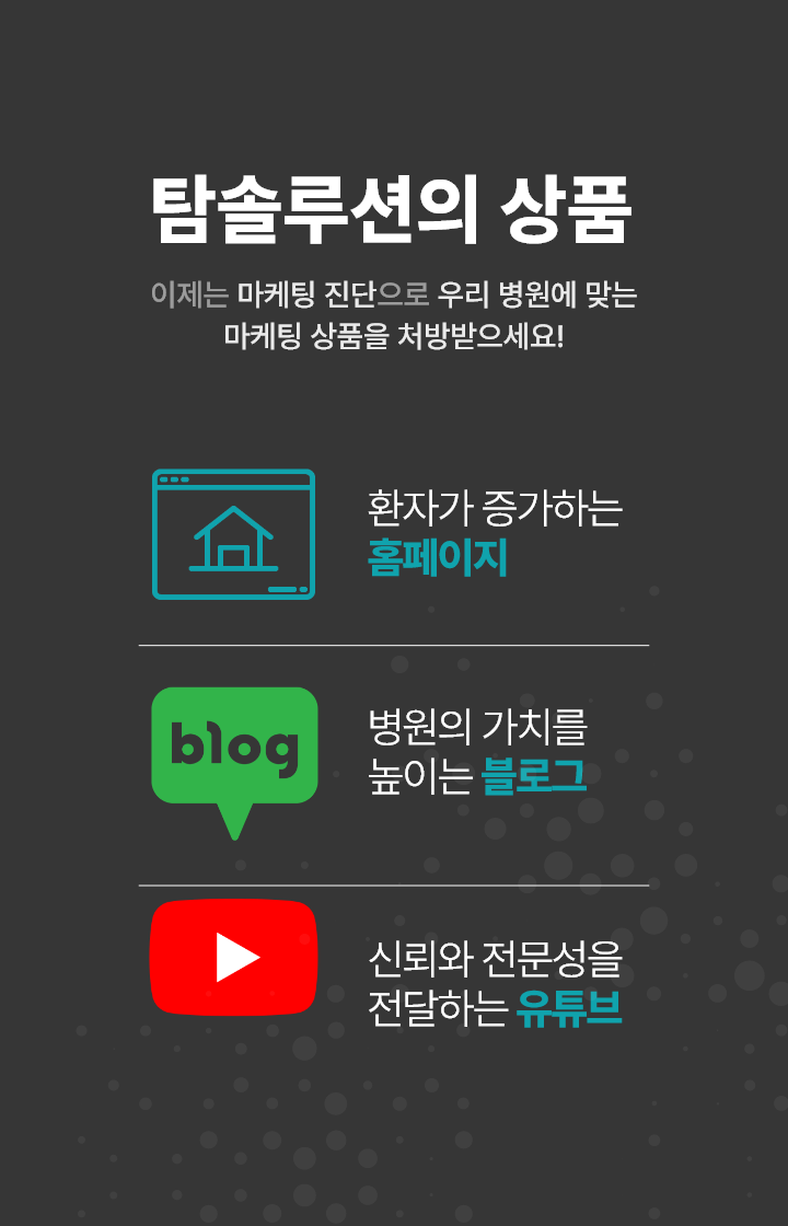 병원의 성장을 위해 생각하고 있는 탐솔루션입니다.