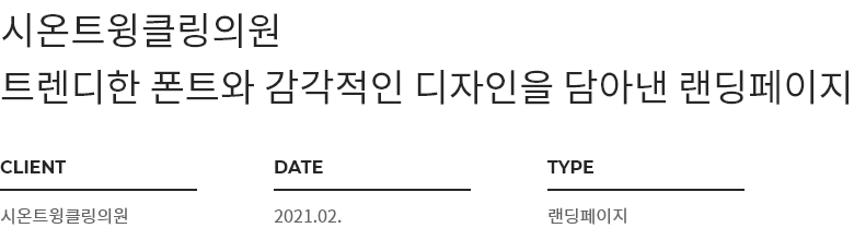 시온트윙클링의원, 트렌디한 폰트와 감각적인 디자인을 담아낸 랜딩페이지