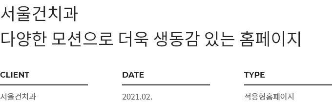 서울건치과, 다양한 모션으로 더욱 생동감 있는 홈페이지