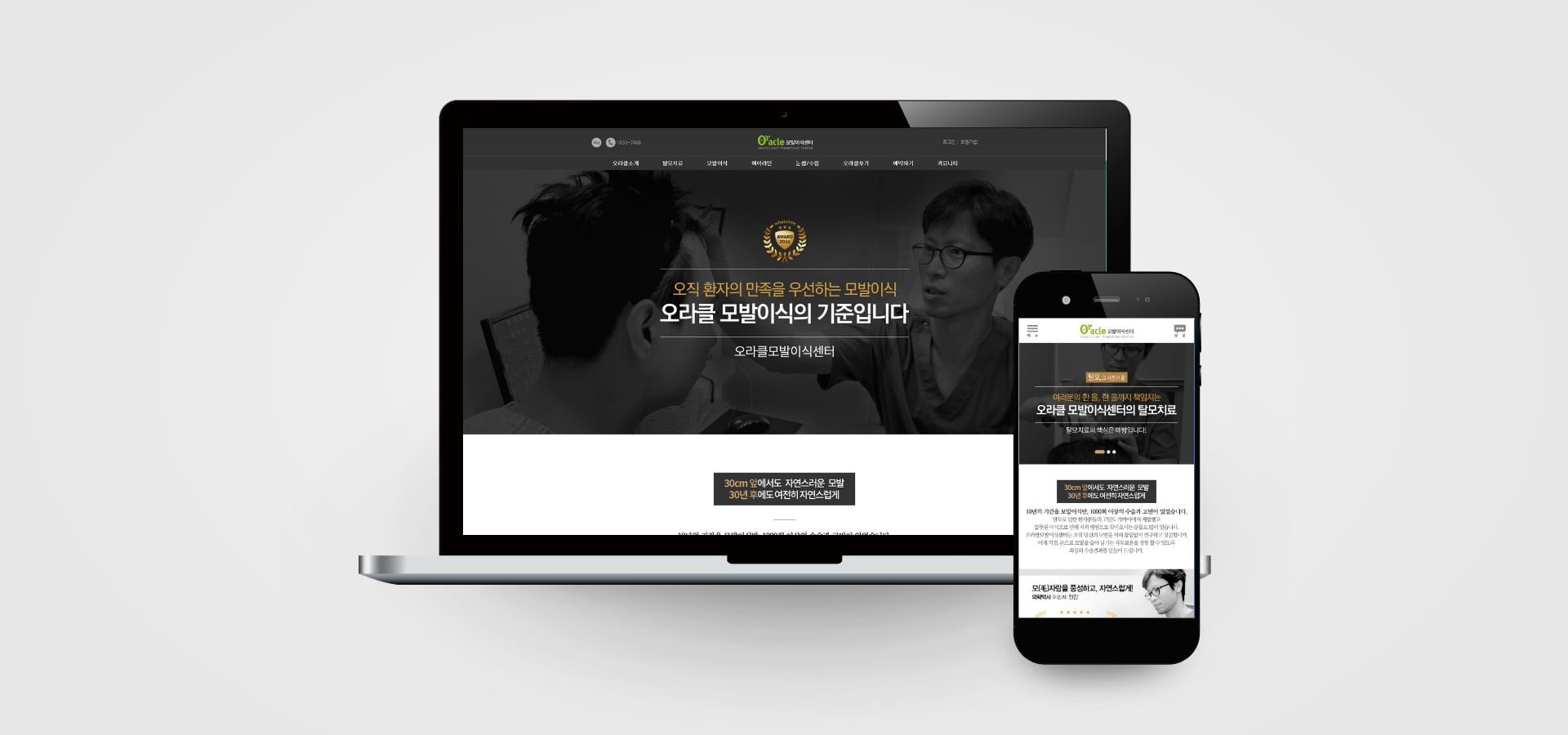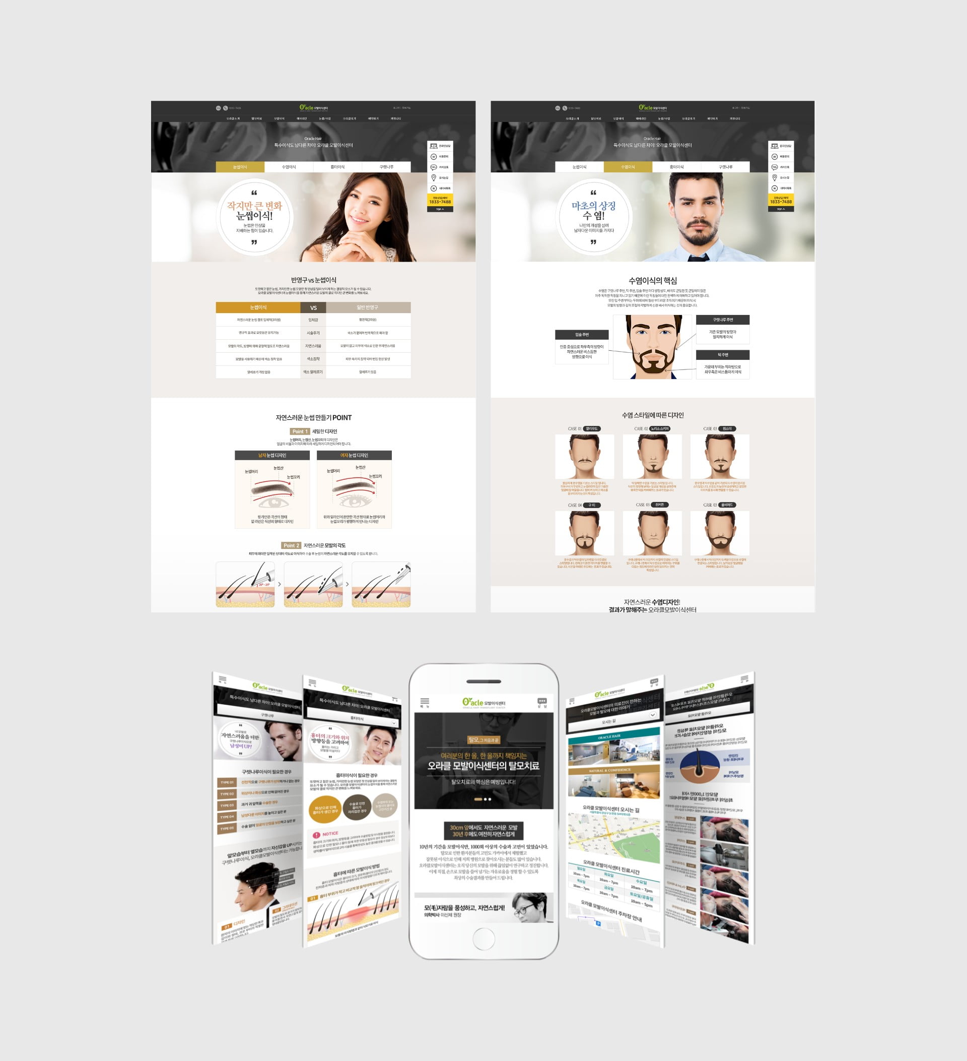 오라클모발이식센터, 포인트 컬러로 고급스러움을 강조한 홈페이지