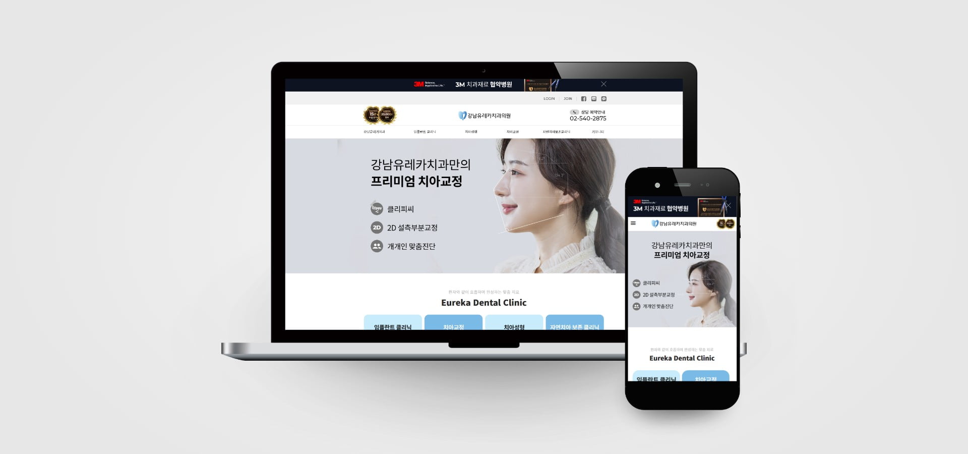 유레카치과, 전문적이고 연구하는 병원의 이미지를 담은 홈페이지