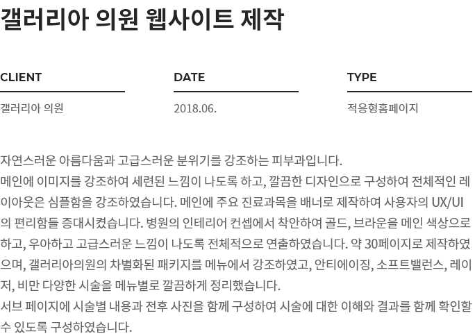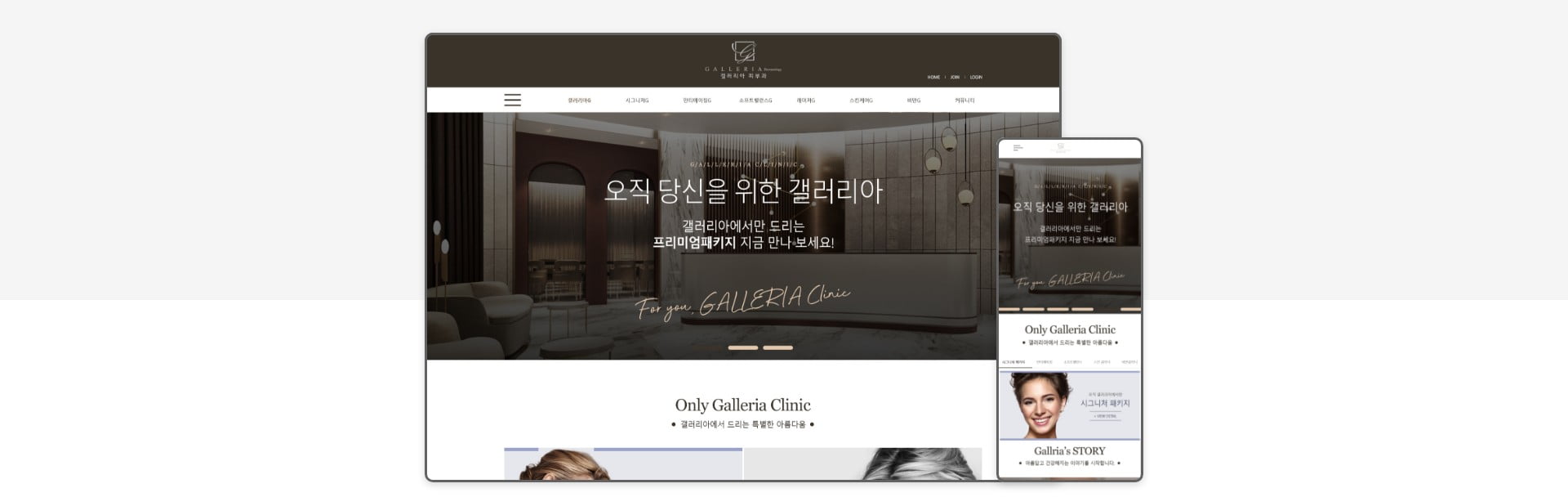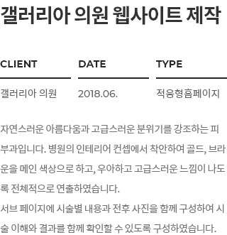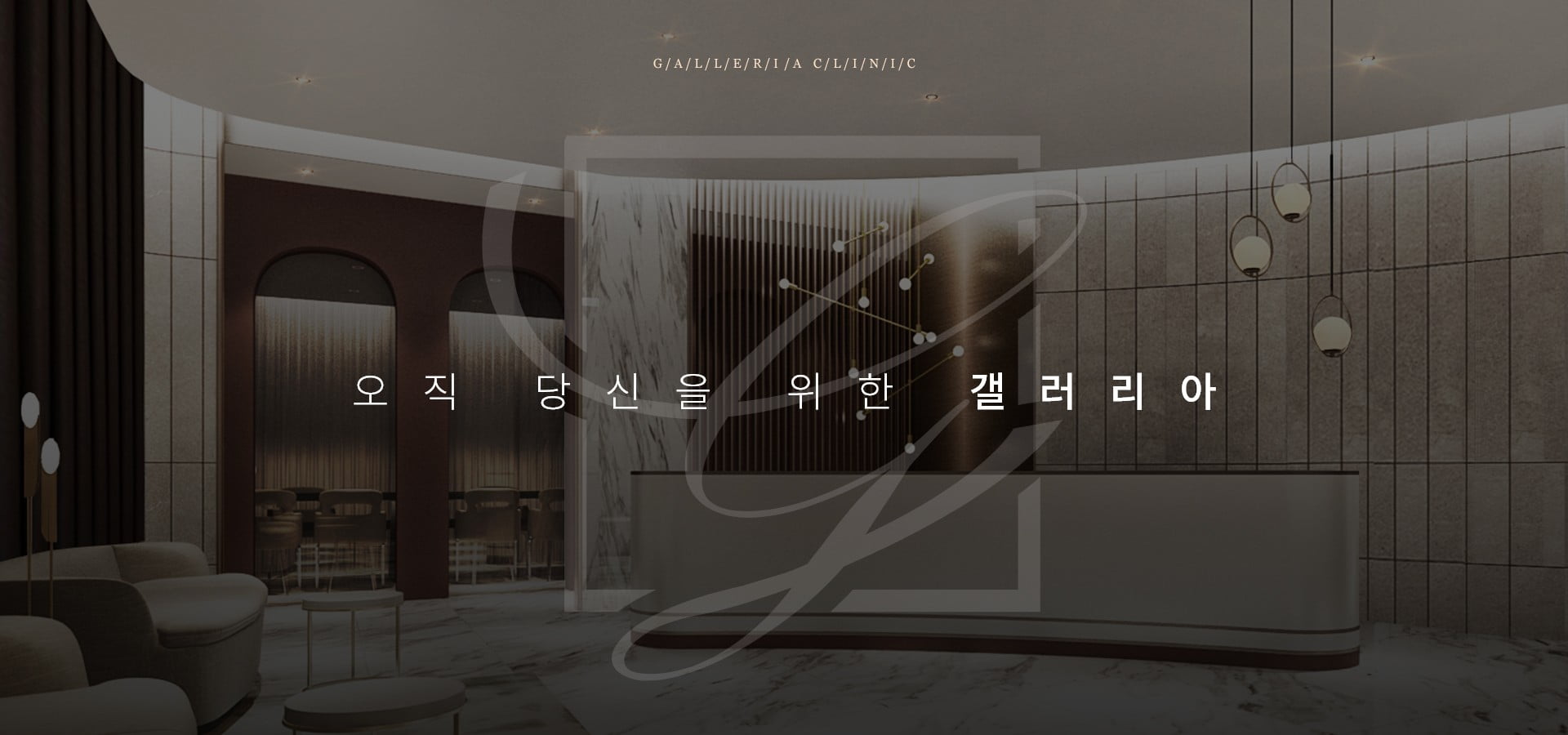 갤러리아병원, 골드와 화이트 컬러의 조합을 통해 강조되는 고급스러움