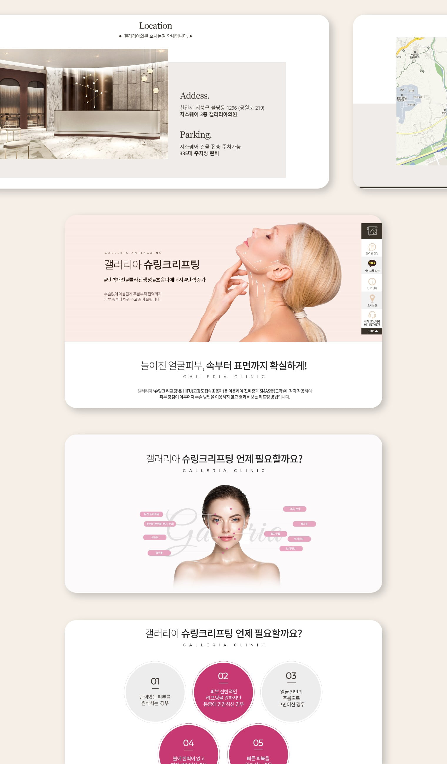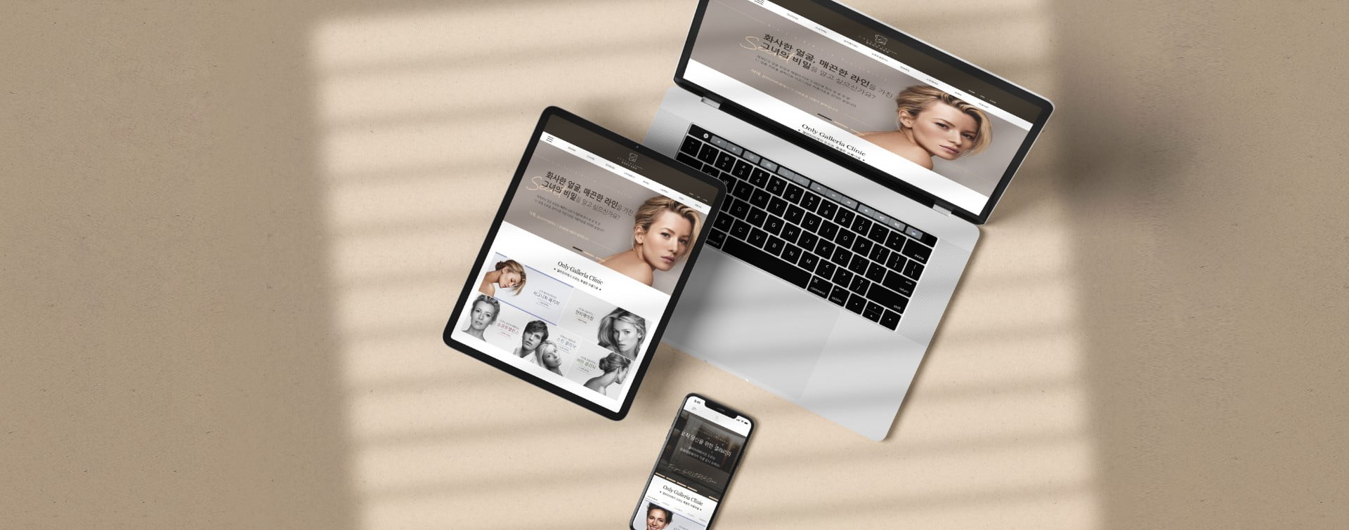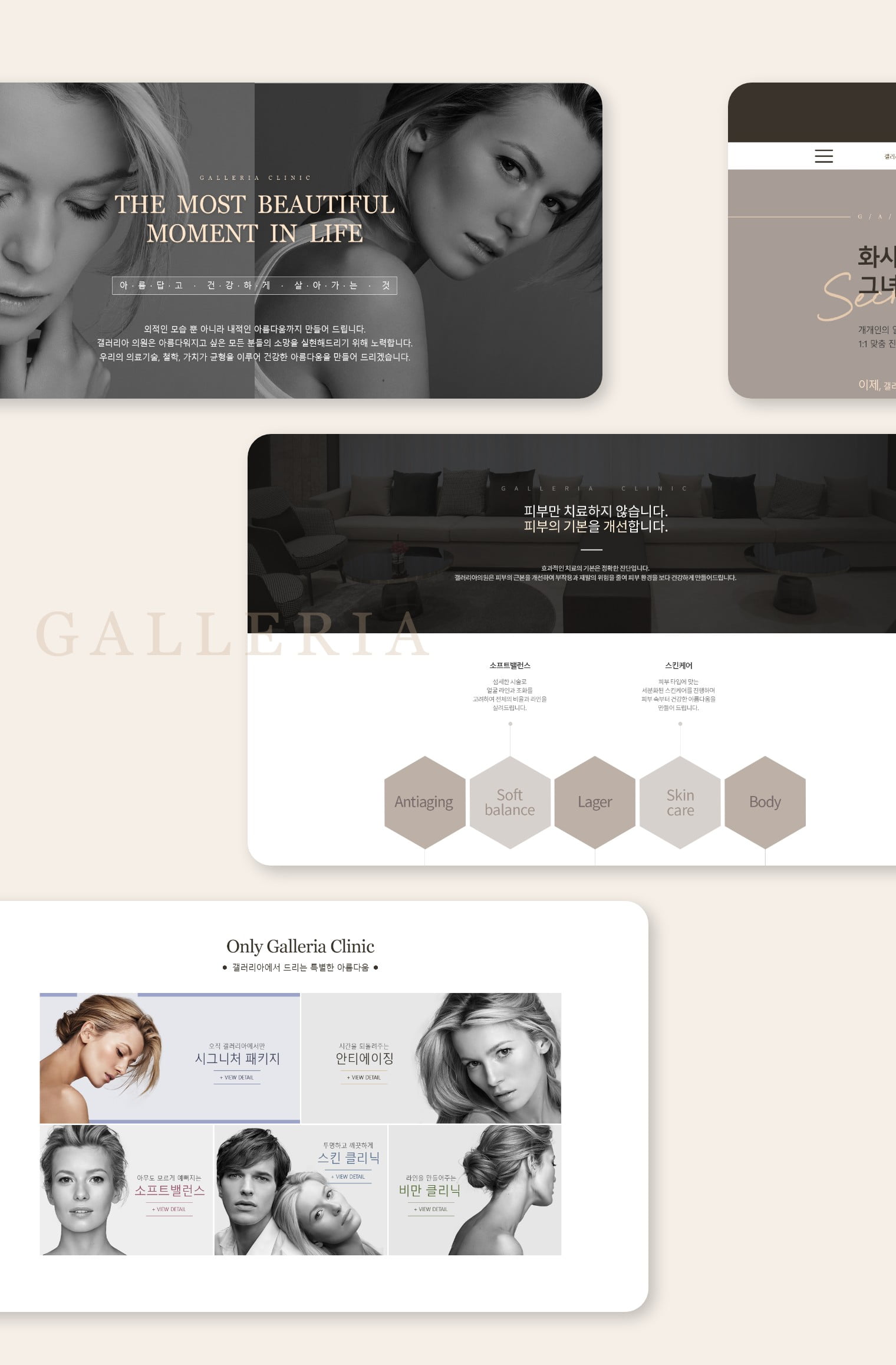 갤러리아병원, 골드와 화이트 컬러의 조합을 통해 강조되는 고급스러움