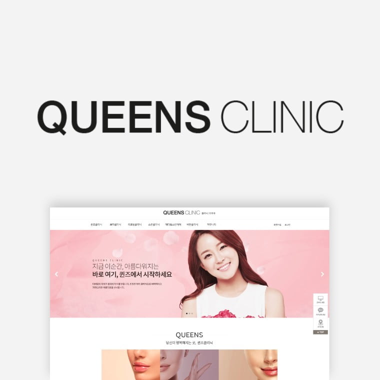 퀸즈클리닉, 깔끔하고 심플함으로 신뢰감을 높여주는 피부과홈페이지